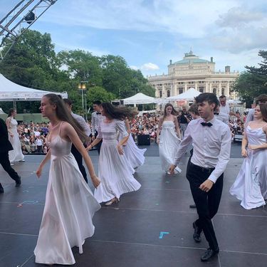 Bei strahlendem Sonnenschein haben die Wiener Tanzschulen den Rathausplatz wieder zum größten Open Air Tanzsaal gemacht.