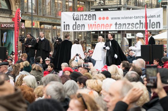 Die Wiener Tanzschulen eröffnen stimmungsvoll den Fasching und somit die Wiener Ballsaison. 1000 Besucher versuchten sich beim Quadrille Tanzen und wurden mit Schwedenbomben der Firma Niemetz belohnt.